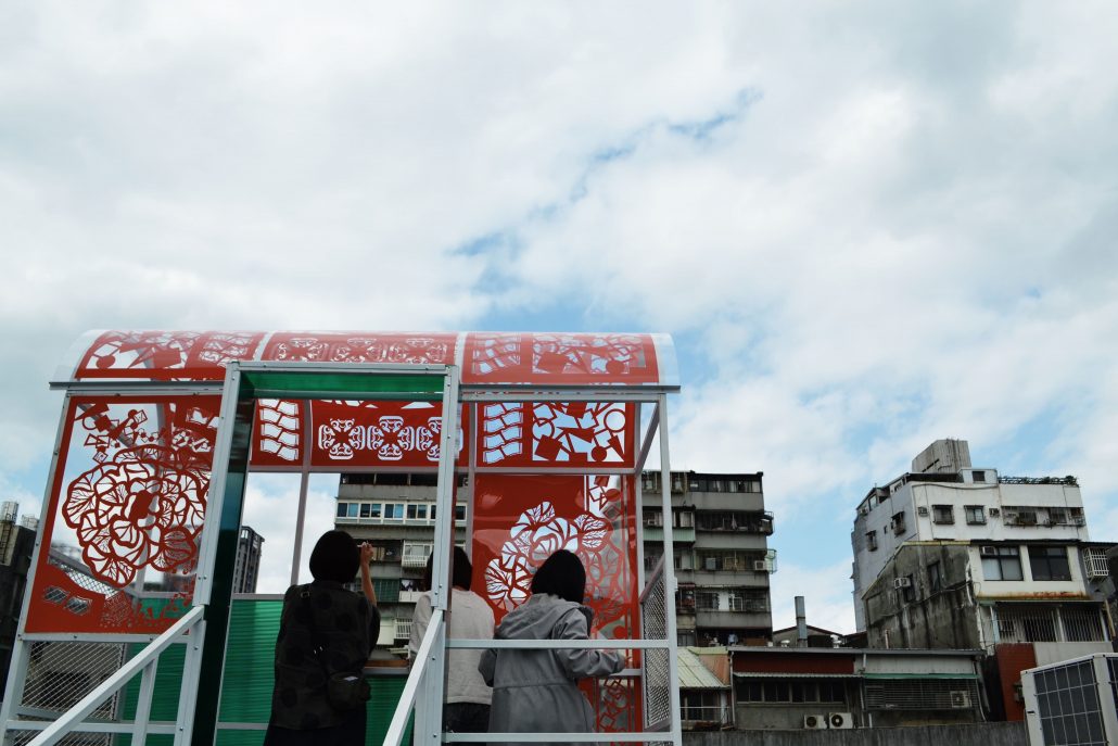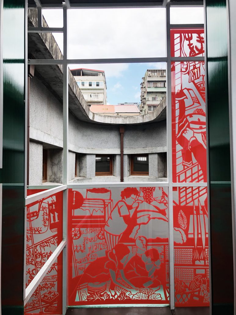 這次展覽,特意在天井內搭建一個「U型天井登高設置」,從底向上延伸,正是述說過去、現在及未來,紙雕藝術家成若涵自身對於傳統市場的想像,並將新富市場裡的迷人風景刻進紙雕創作當中;而觀者在一步步登上高台觀賞紙雕創作時,也因不同高度視野,擁有了再次感受老市場與鄰近住宅之間緊密關係的機會。