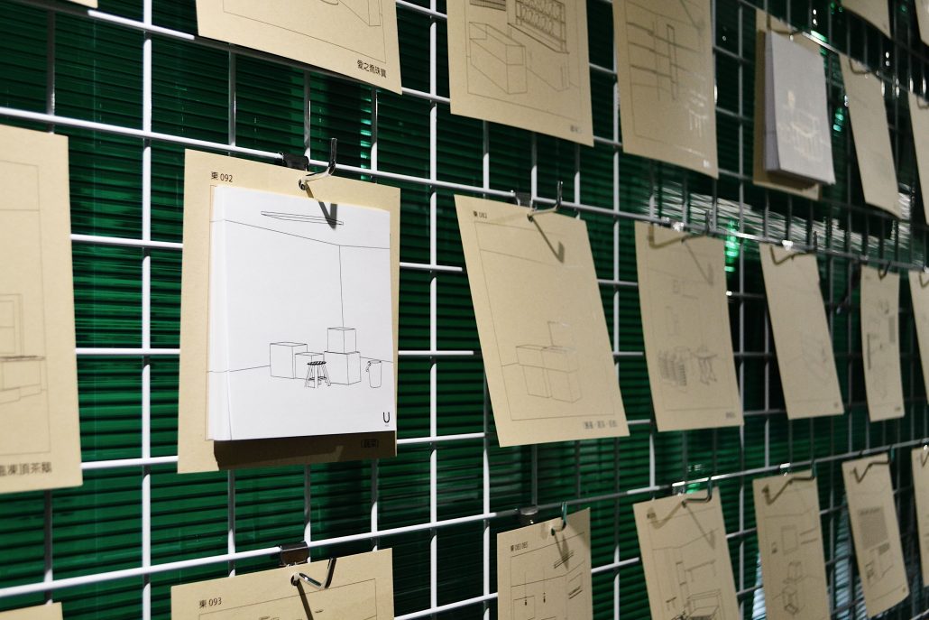 掛在牆上的是新富市場內每一個的攤位樣貌,下方桌面擺放著色鉛筆與板凳,邀請人們一同畫出對於未來市場的想像,而這些想法在展覽過後也將成為未來建構文化市場的重要養分。