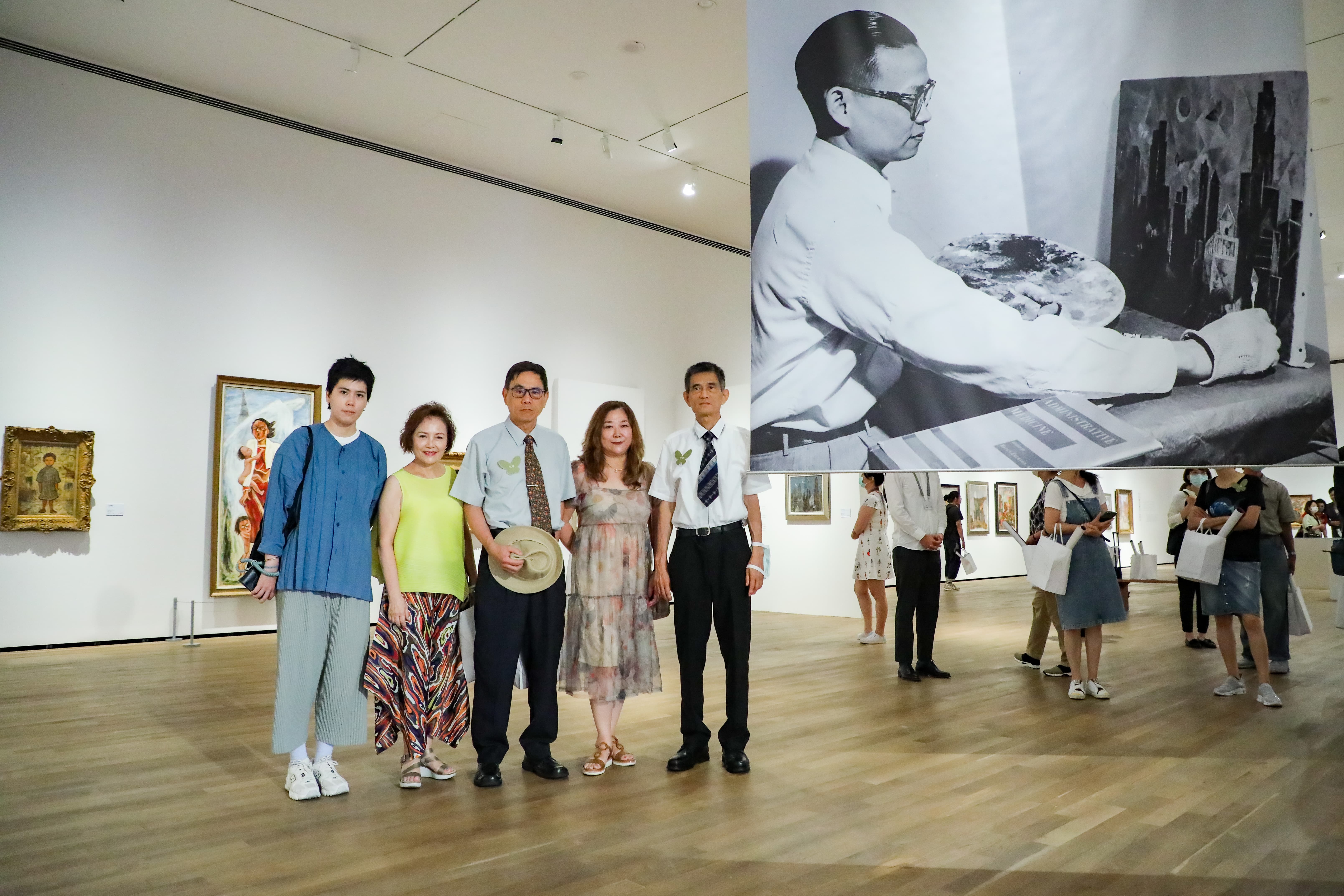 許武勇家屬於展間內與許武勇作畫時照片合影留念。