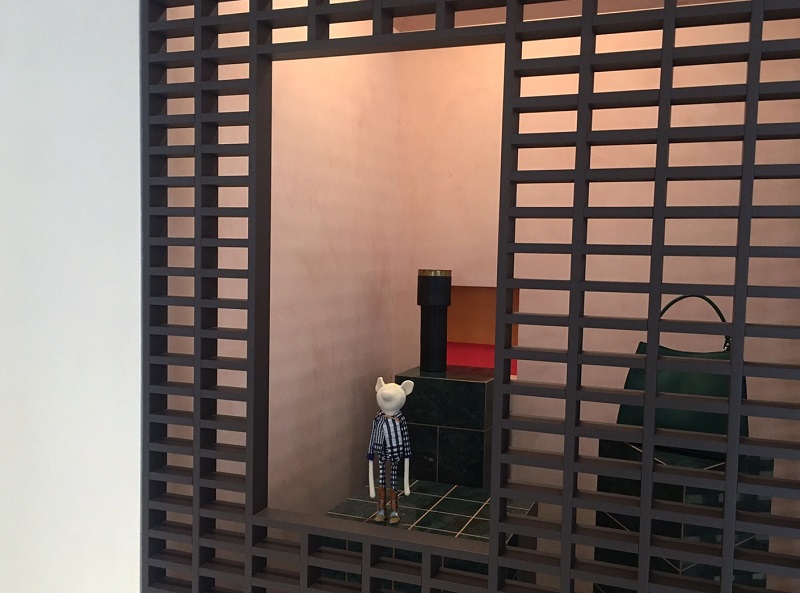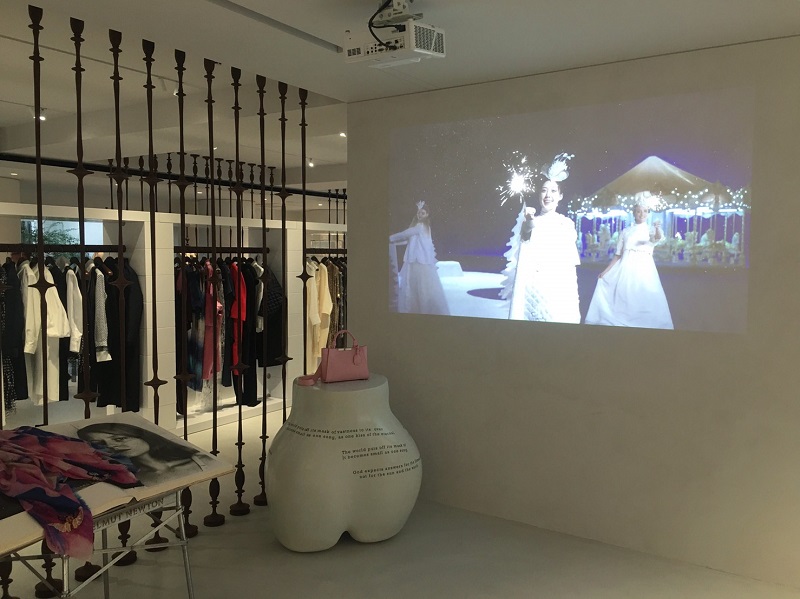 推開復古又時尚的白色旋轉門,特殊白色塗料框架著氣質非凡的壁面,牆上以電影形式播映著當期「型錄」;而每尊裝置雕塑作品上畫上:數學算式、泰戈爾詩詞,天文學手稿與時尚象形文,代表人生在追尋世界觀,理性,感性,時尚中,平衡的找尋正向思考的能量。正如總監陳季敏所言:「我是個很會建立內外在的人,尤其是內在思考。每個人都是自己的小宇宙,我們可以透過感染美好的事物,去經營好自己的世界。」