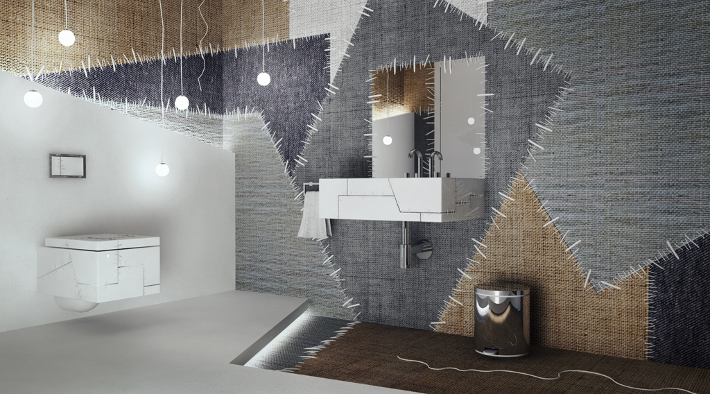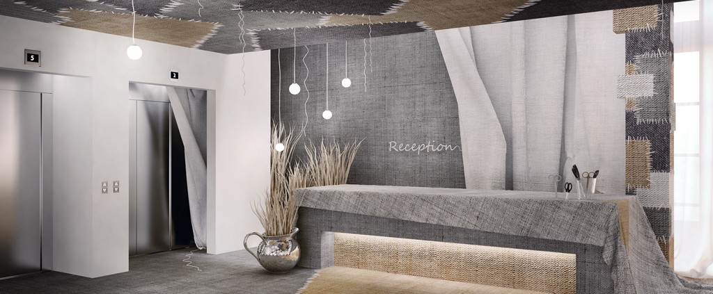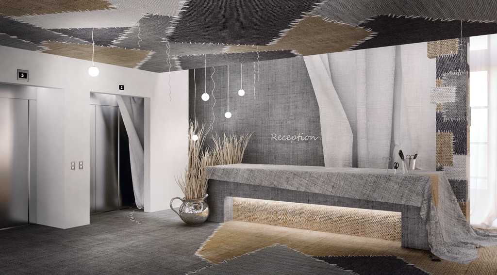 此作品主要設計概念在證明優雅的內飾不一定只能限於使用玻璃或金屬的材質形態,質地粗糙的織物同樣也可以營造出高品味的氛圍。從接待大廳的天花到地面,如同一塊完整的布料剪裁、鋪設、縫補,表現出粗糙質地的另一種優雅情節;而純白鋪設的場域,延續相同元素概念從吧台、燈飾一路拼貼而成,仔細瞧瞧門框以及座椅每吋都隱藏著縫補過的痕跡,展現出手感下的餘溫。一以貫之的手法,依空間序列不斷推進,連洗手間也在織品的紋理下形成難以重覆的另類生活經驗。那些看似異質而陌生的空間,奇異中有熟悉的輪廓,帶著浪漫主義的眼光;透過Karina Wiciak 之手設計,不再具有制式框架,反而在充滿象徵和比喻的符碼中,尋回商業場域裡自由奔放的創作魅力。