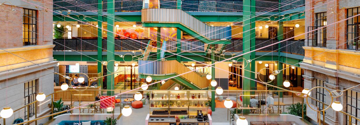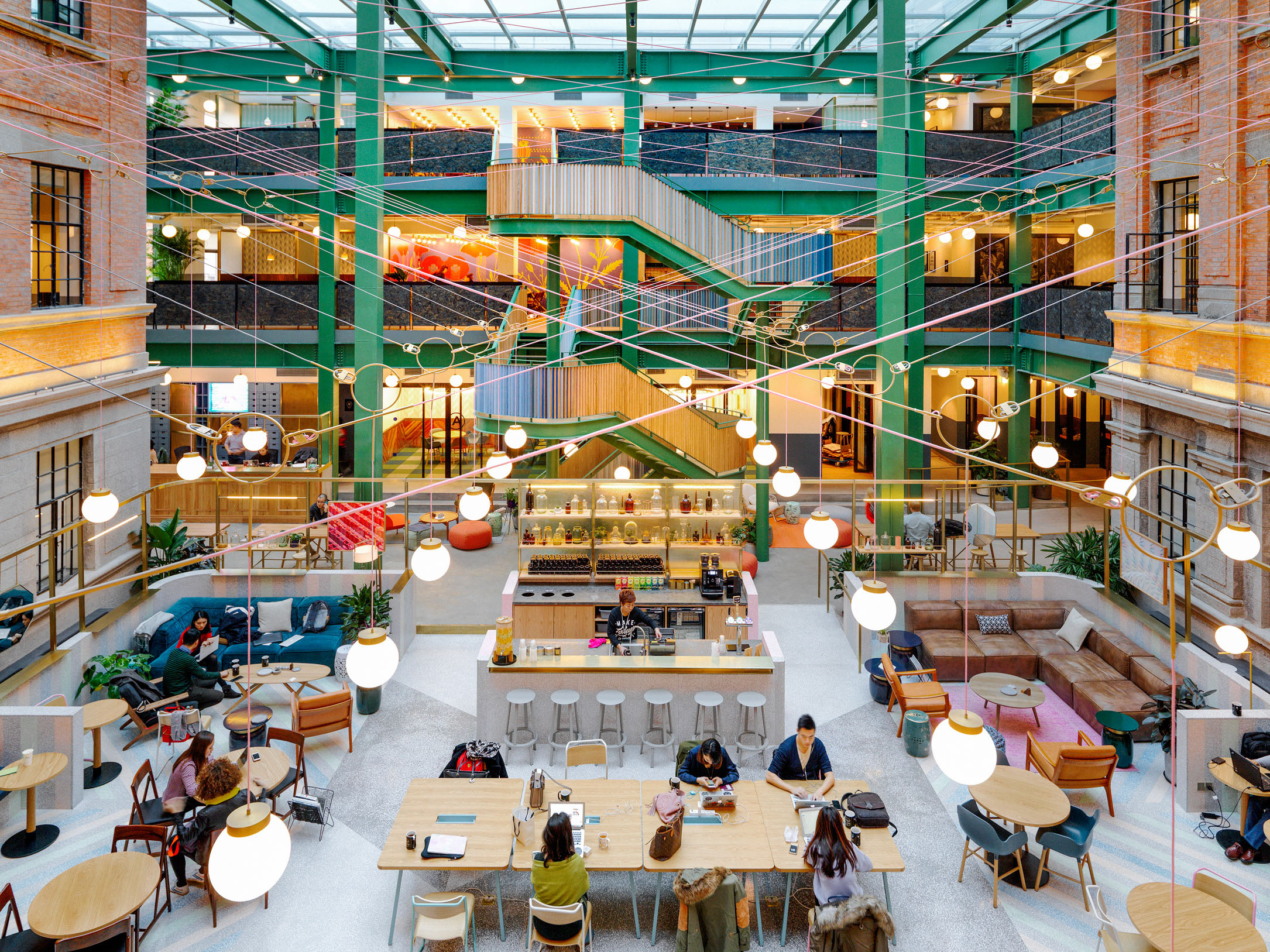 在上海已有4個據點的Wework,今年2月於靜安區威海路成立中國旗艦店,這棟建築前身為鴉片工廠,而後更曾匯集40多個藝術工作室和畫廊,在當地設計團隊Linehouse重新打造下,將寬闊的空間化身為飯店般的現代設計,成為融合新舊魅力的共作空間。