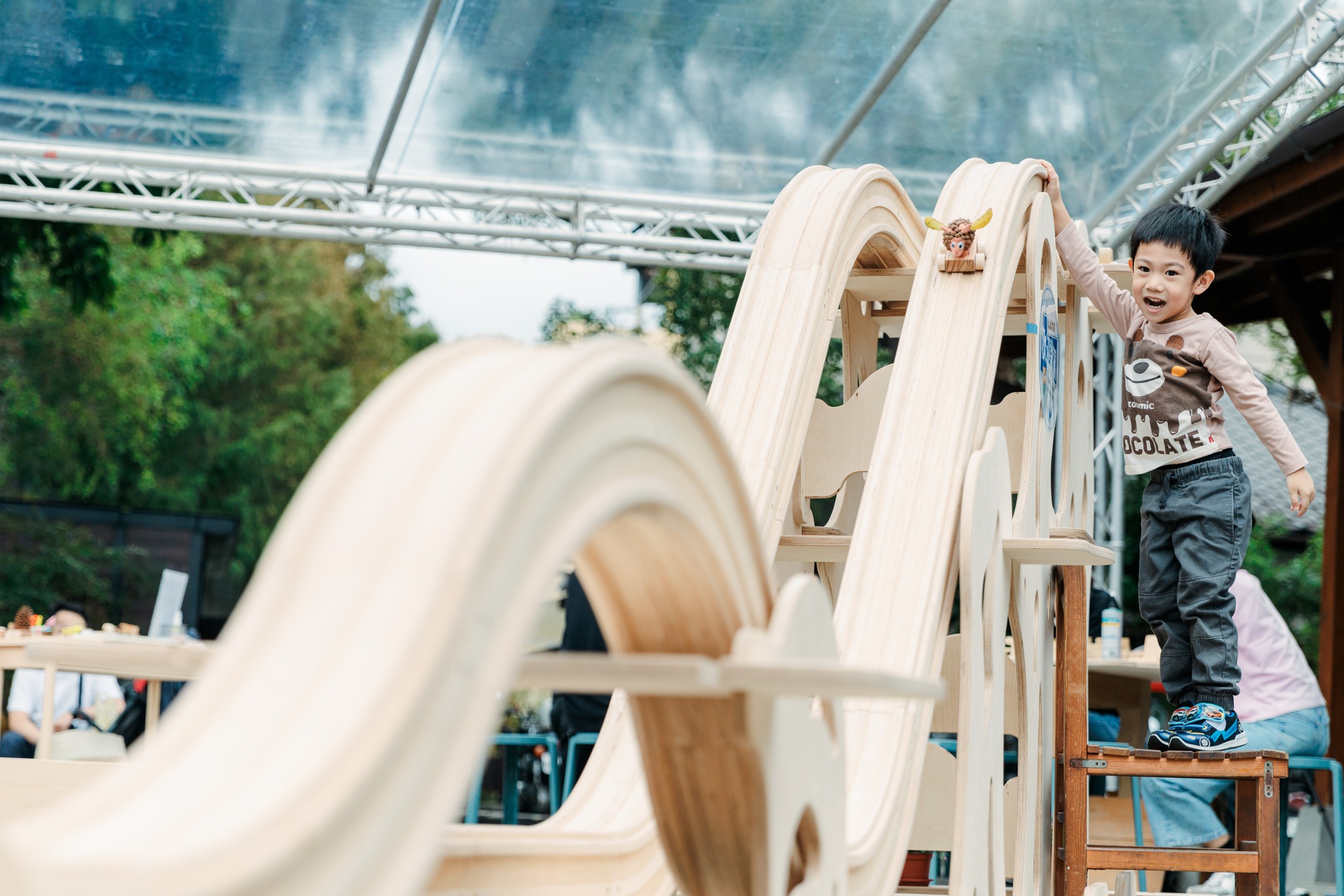 《BUBU跳恰恰》手作木飛車將現場搭起七米軌道邀請孩子們一起來飆速。
