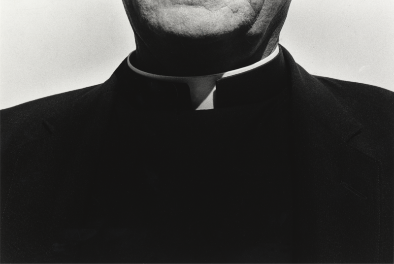 Ralph Gibson,《Priest》|作品由巴黎 Bigaignon 畫廊提供。這件經典攝影作品以強烈光影對比與張力十足的構圖,形成展覽的象徵性收尾。