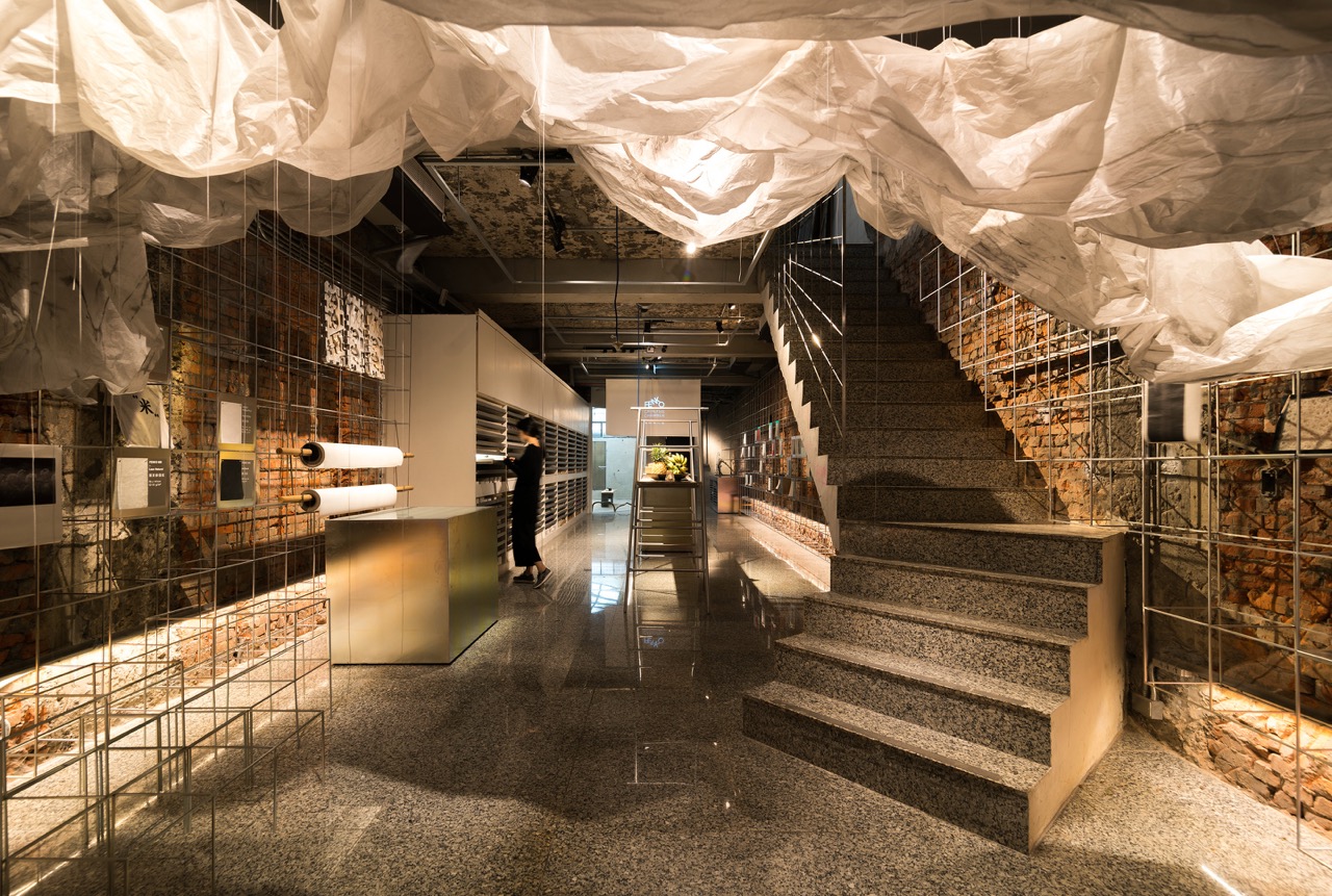 回臺的洪浩鈞,成立了Üroborus_studioLab 共序工事,也迎來了屬於走向世界的起點與開端。「FENKO鳳嬌催化室」,洪浩鈞表示,業主的本業是家傳三代的造紙產業,因此洪浩鈞與設計團隊在初期便以『紙』作為設計上的出發點,原本業主本業所生產的為工業用紙,大多直接外銷,因此洪浩鈞與設計團隊進而提出『行為、材質與人』做為核心概念,透過可靈活變動的空間機能、以人與紙之間的行為作為催化劑,邀請所有對紙有興趣的設計師、藝術家與一般大眾一同探究紙的更多可能性。