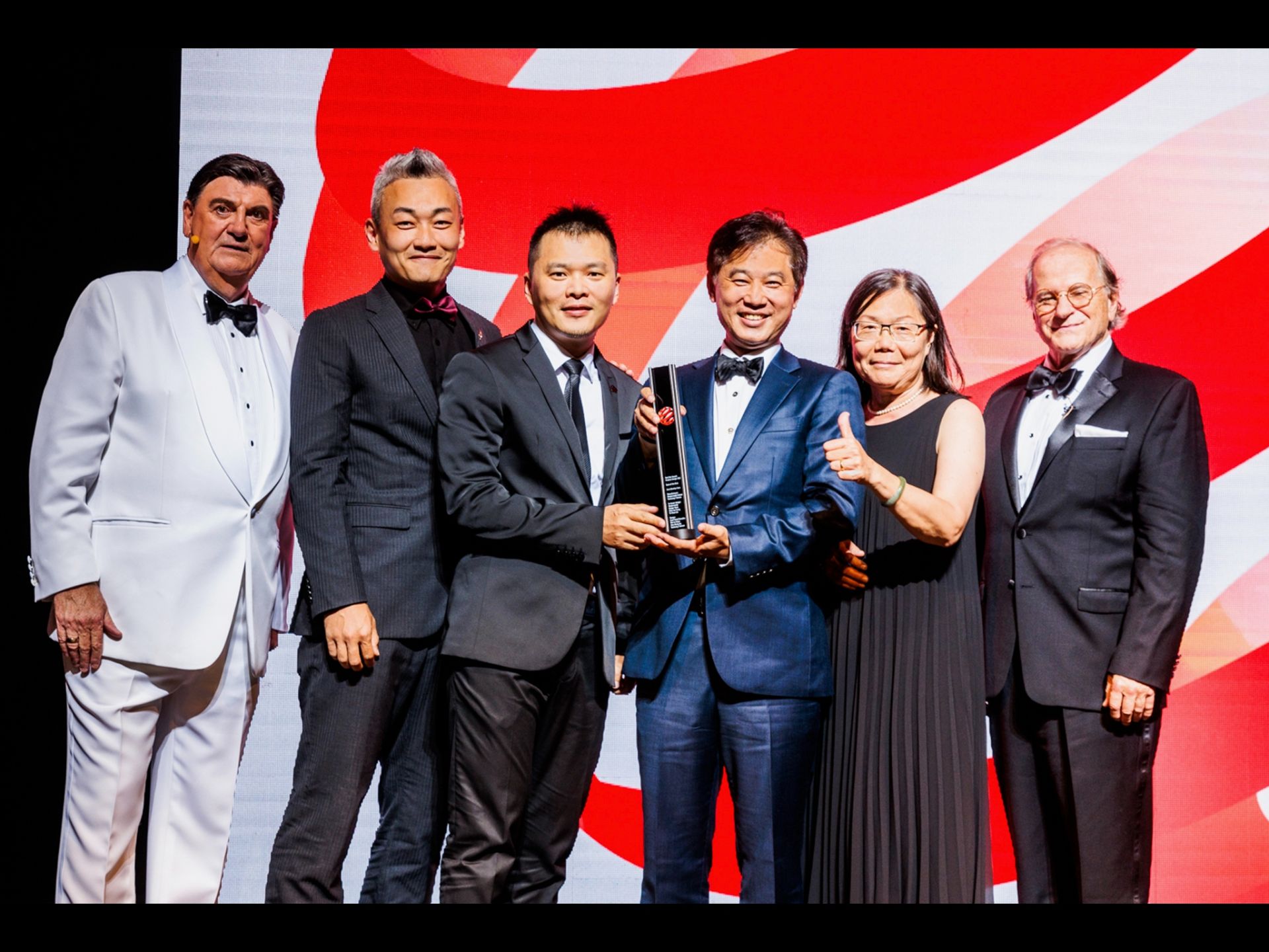 蕭韋立與團隊在德國紅點設計獎頒獎典禮現場。圖片來源/立創設計