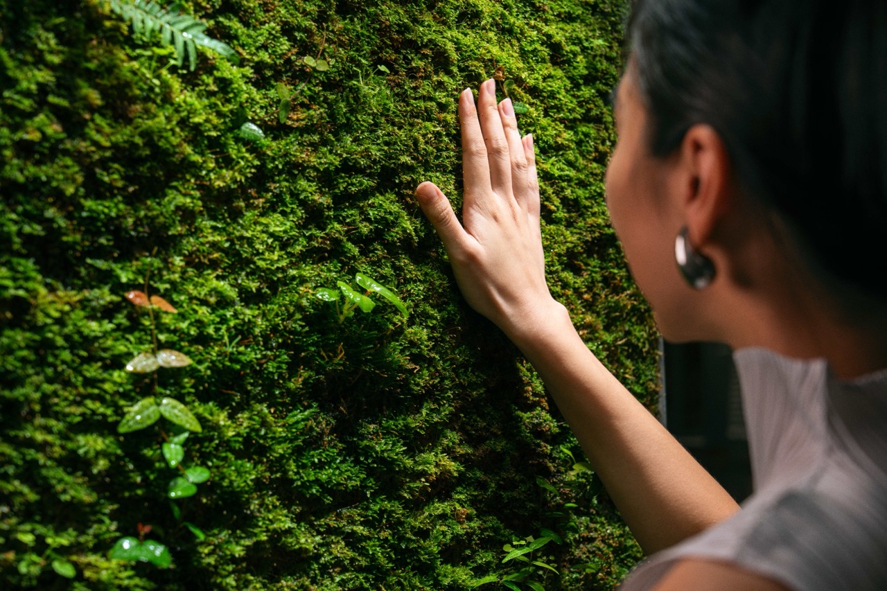 圖說:Lino 邀請我們親手觸摸苔蘚,指尖劃過時能感受到獨特的濕潤與彈性,讓人立即與自然建立連結。(photo credit: DFUN)