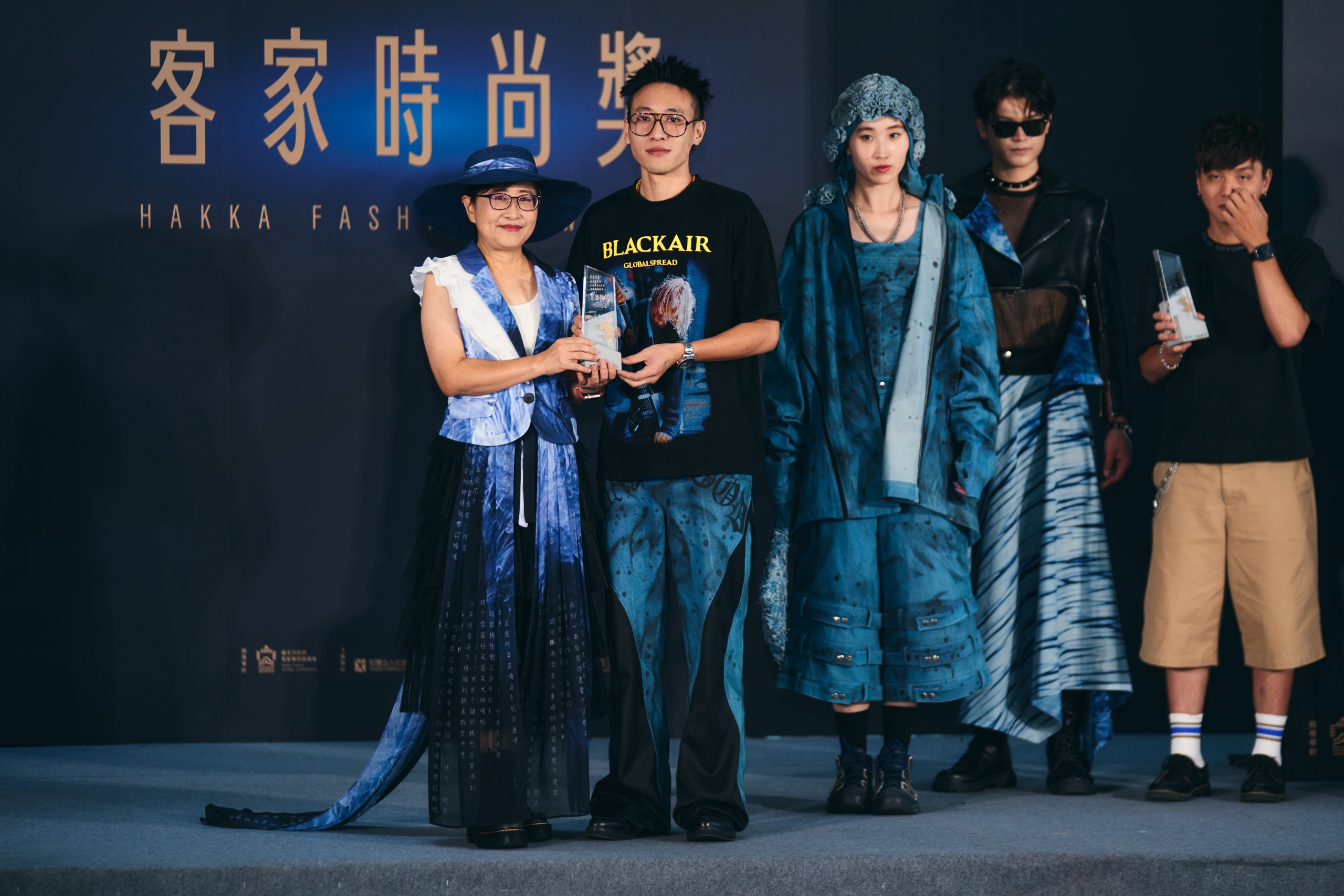學生組冠軍歐修維,來自樹德科技大學服裝設計系,以作品《Blue Roots》奪得首屆 2025 客家時尚獎最高榮譽。(photo credit:歐修維)