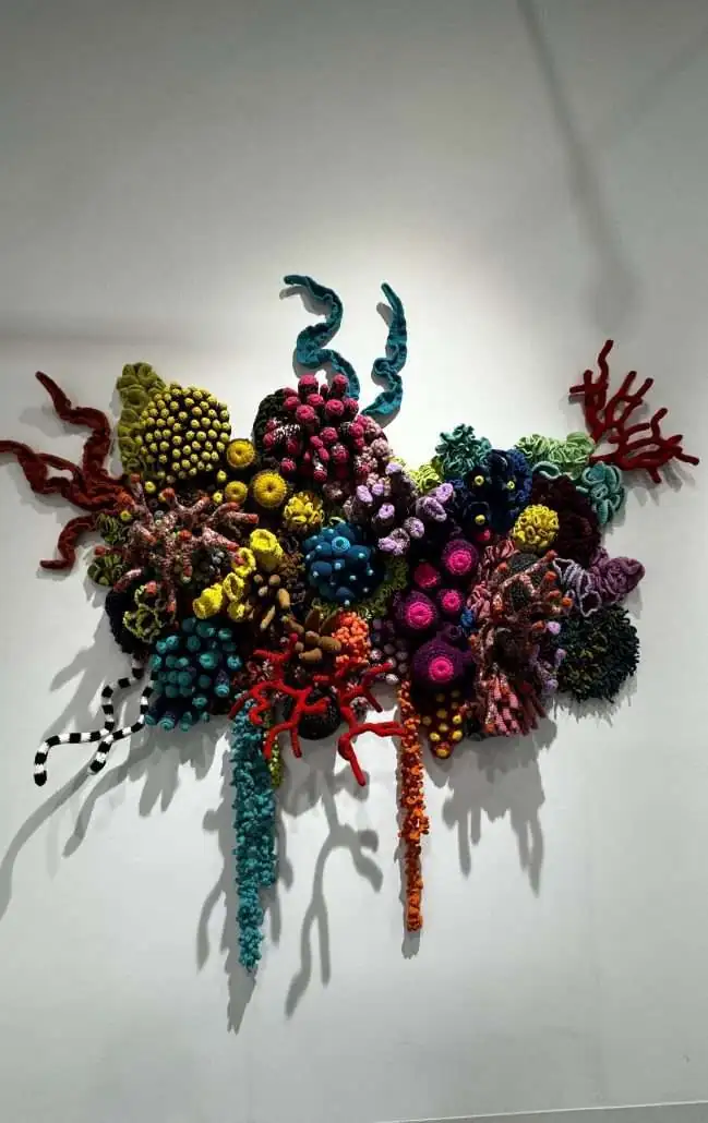 印象畫廊,鄭麗雲。圖片來源/DFUN。D GALLERIE展出來自印尼的藝術家,以針織技術呈現宛如海底生物的生動感與型態。