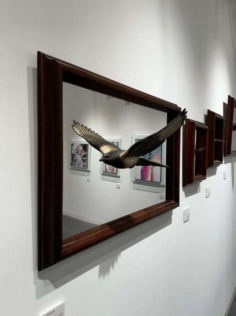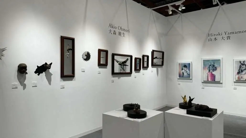 丁丁藝術空間展品之一。。圖片來源/DFUN。新生堂畫廊則展出在日本享譽盛名的大森 暁生 (Akio Ohmori)老師,帶來著名的成像鏡作品,需要在特定角度才能將一半貼於鏡上的生物以完整的姿態呈現出來,此次大森 暁生也帶來全新兔子作品。