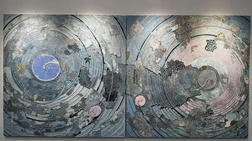 姜淼作品。圖片來源/DFUN。此次Bluerider ART 展出作品囊括東西方抽象組合精彩作品。藝術家們對大自然色彩、紋理、光影的感知以及人文哲思融入作品,以多元方式探索當下時代議題並展現當代藝術的多種形態。