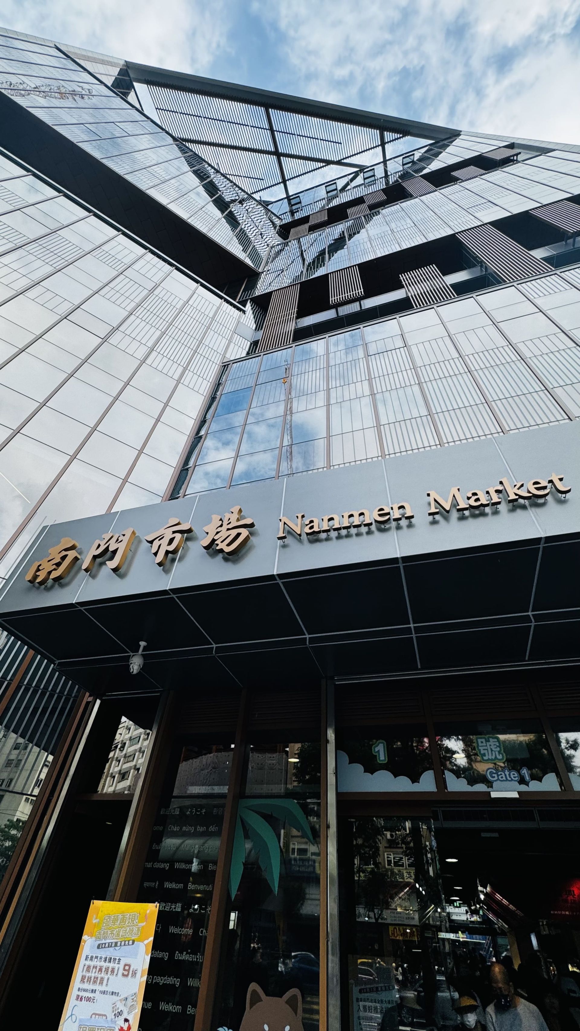 南門市場改建是由九典聯合建築事務所的郭英釗建築師團隊的帶領協力廠商一起來計劃的,從外觀能看見南門市場的招牌更有多國語言的翻譯,更具國際性。走進市場,有別於過去的菜市場會有的許多味道交織的空氣,在挑高的空間中流通的空氣,透過空調更能有好的流通。大面積的玻璃採光,也替照明更可以有節能效果,透過大片落地玻璃採光,能讓陽光灑進來之外也能讓空間明亮化,在二樓設有休憩區,讓消費者能在午後透著陽光的小歇一會。過去舊有的南門市場曾是海砂屋建築,也因老舊問題而曾經遷址,這次再重回原址,更像是回家了一樣。