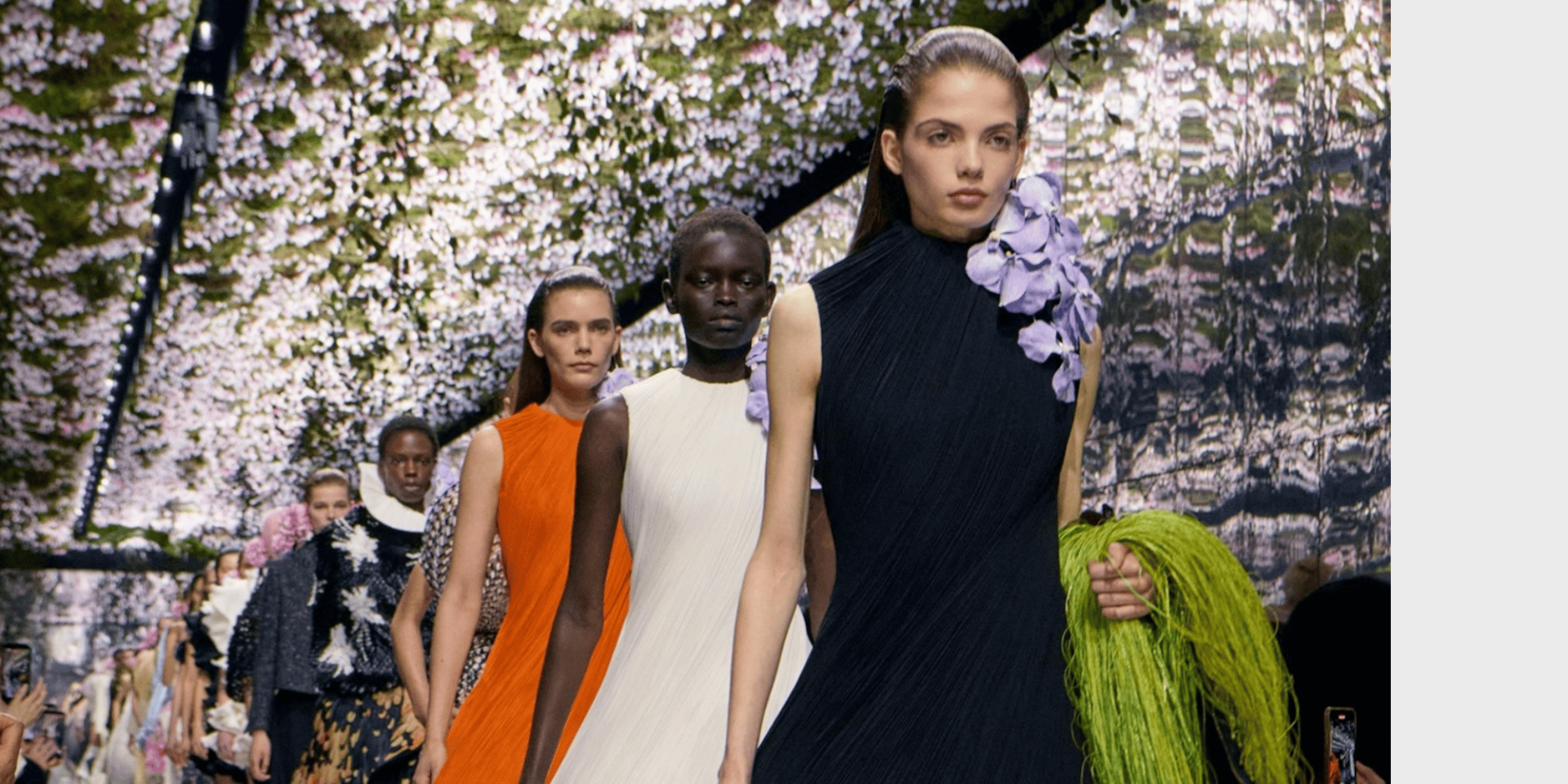 大秀現場匯聚了法國第一夫人Brigitte Macron、LVMH主席Bernard Arnault、亞馬遜創辦人Jeff Bezos與Lauren Sánchez Bezos賢伉儷等政商巨頭,以及品牌大使Anya Taylor-Joy和Jennifer Lawrence等名流。值得注意的是,前創意總監John Galliano也在2011年離職後首度重返Dior秀場觀禮。由於全場賓客靜候蕾哈娜(Rihanna)抵達,這場名為「In Bloom」的首秀最終延遲了近一小時才正式拉開序幕。