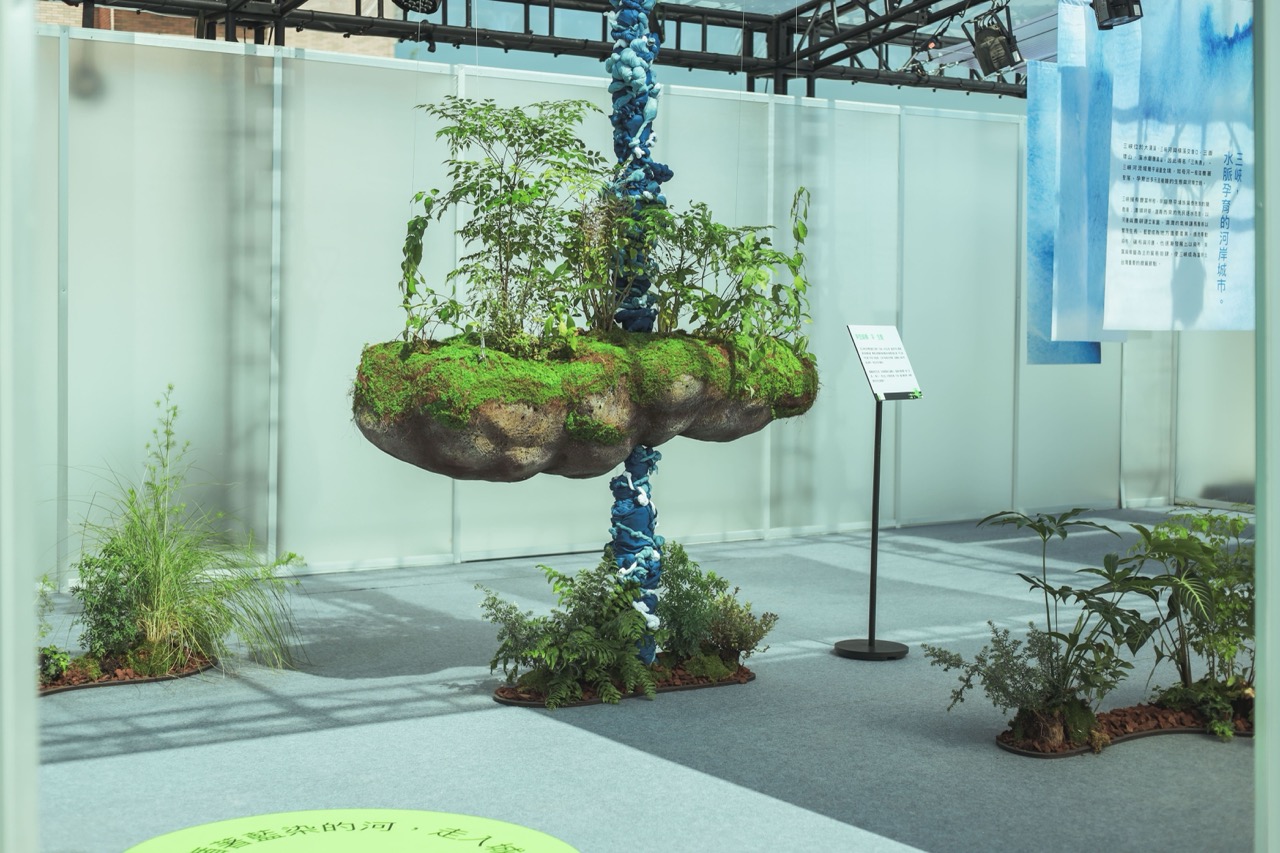 場域核心為微型植藝策展「久年植嶼 Joyear Island」,由「Temperature 溫度物所」與創意內容團隊「留白計畫」共同打造。展覽爬梳三峽地域特質,將河岸文明、山林資源與藍染文化轉化為感官體驗。裝置結合藍染布藝與大型植栽,以原生植物為軸,勾勒人文與自然交織的地方肌理。