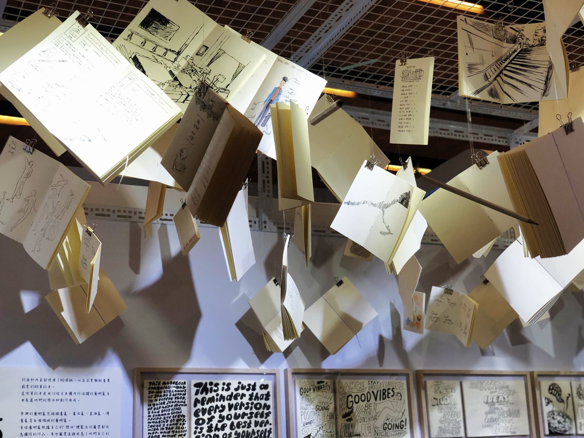 紙品專家MD響應15週年,特別將15位合作藝術家的設計原畫空運來台展示,設計師更親手將所有的原畫親自掛上展場上方,形成展場具有風格的角落,錯落的原畫在空間裡形成錯落的空間層次感。不妨在參展抬頭看看藝術家的創作原畫吧!