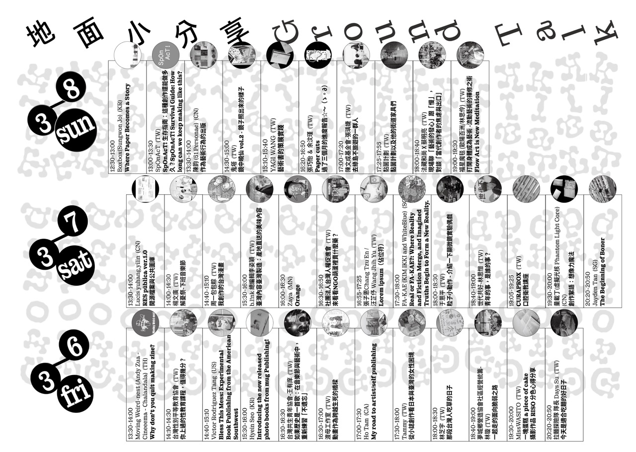 數位版活動地圖詳細羅列三日展期內於各區域進行的小動作分享與交流時段。
