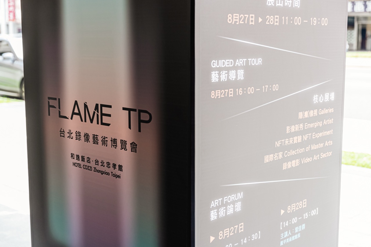 博覽會於今年 8 月底 27、28日在和逸飯店‧台北忠孝館隆重舉行,團隊由大苑藝術主辦,盛邀知名策展人羅禾淋擔任藝術總監、與其創辦人張學孔攜手合作,匯集眾多深具潛力的藝術家,開拓亞洲的藝術市場。FLAME TP 的理念旨在重新思考影像於這個資訊時代下的意義,它既能記載真實的時空和場域,亦能描繪虛幻的記憶與幻境,並以當今獨有藝術媒材的身份,挖掘錄像藝術的廣域。