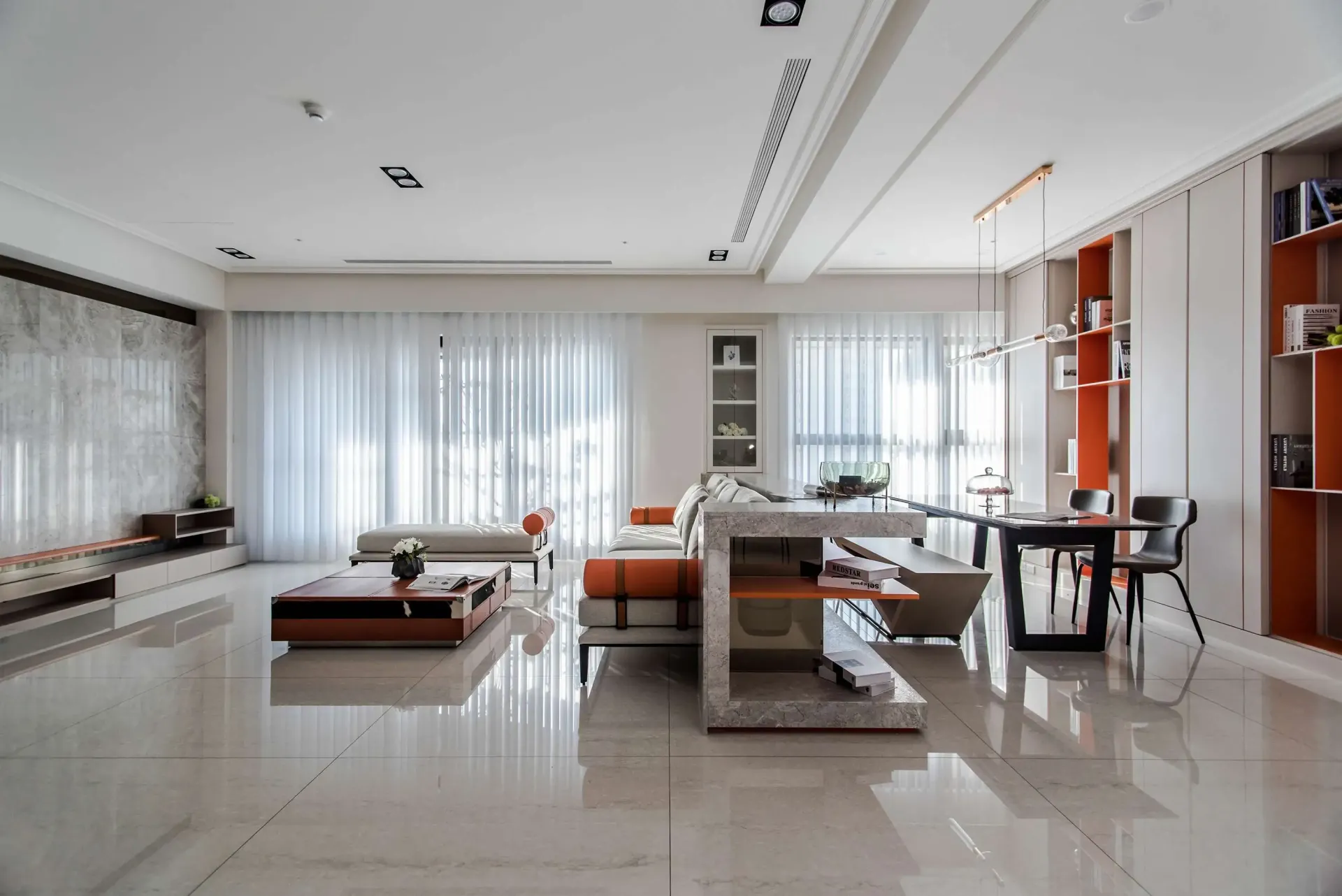 黃子溱 2022 MUSE Design Award 金獎得獎作品《品陽大苑》榮獲金獎的《品陽大苑》展現了高雅的品味,在寬敞的公共和私人區域塗上橙色皮革漆,營造出明亮、和諧、舒適的色調。留下適當的空白,利用線性和圓角的特點,塑造出如一幅畫般的藝術魅力,也方便業主本身對於未來的不同規劃。在內部立面和櫥櫃上塗上一點大地顏色的橙色系烤漆,以產生出豐富的層次感,並且選擇了同色系的燈飾,彰顯這幢豪宅的清新精神、傳遞能夠留存悠遠的時尚氣息。