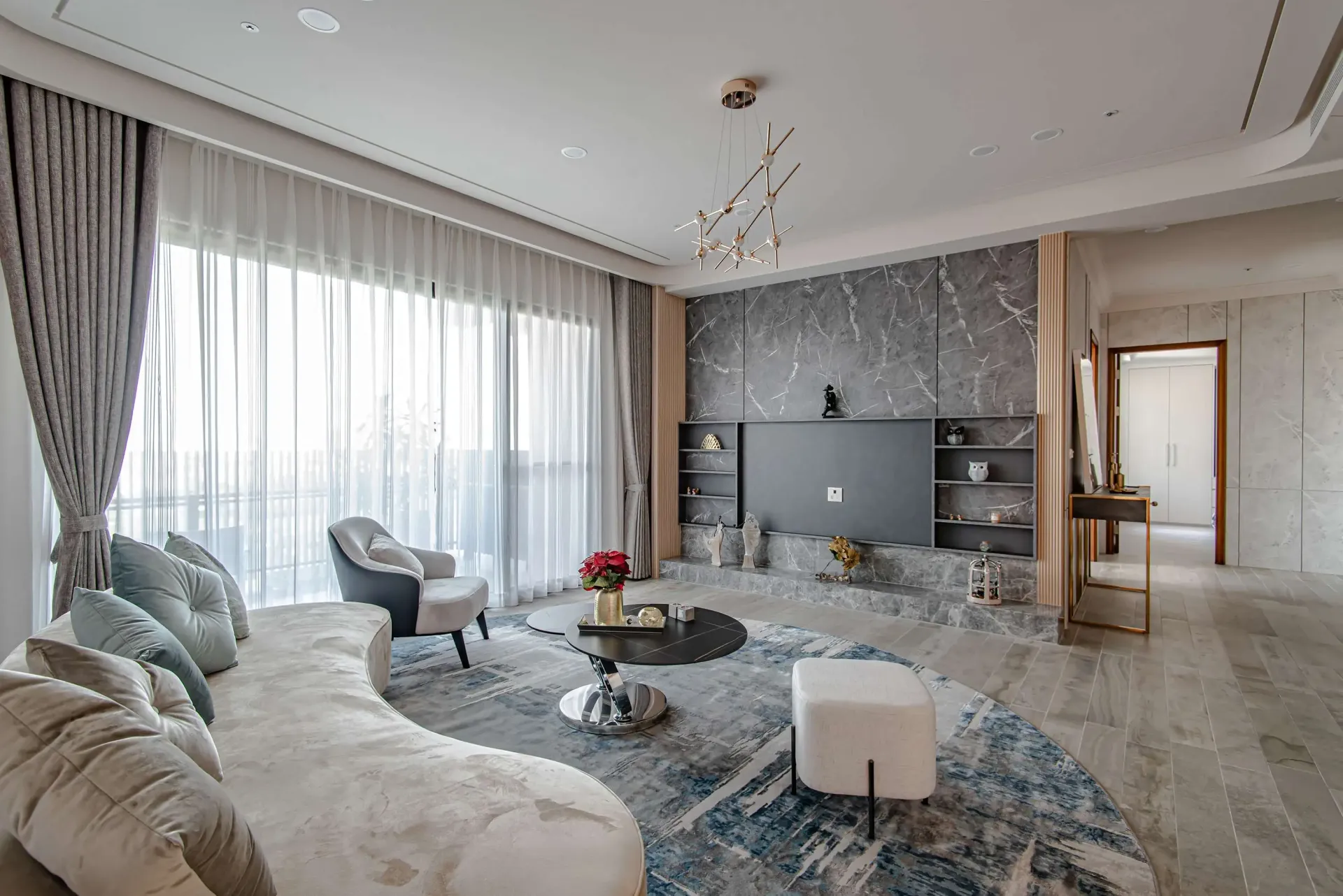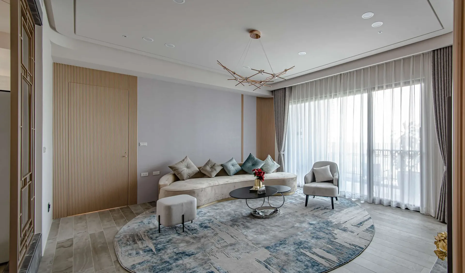 黃子溱 2022 MUSE Design Award 金獎得獎作品《品陽大苑》而開放式公共區域配有大型落地窗,讓整件作品的採光極佳。透過安裝柔軟、透明的窗簾,視覺柔和的立面和地板反射周圍的光線,營造出通透明亮的環境,讓住戶回家後能夠立即感受到悠閒自在的氛圍。在空間內適當佈置符合人體工學的陳設家具,以滿足屋主的生活習慣。沿著走廊規劃留白的空間,以方便屋主隨意放置個人物品,也有利於將來某一天的重新規劃。