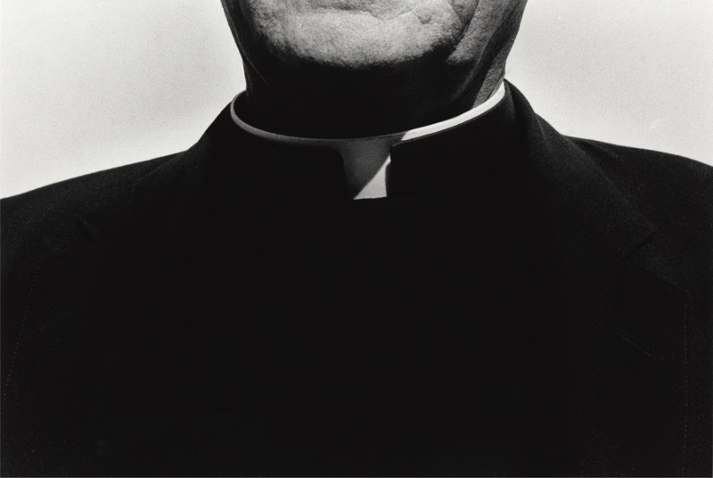 Ralph Gibson,《Priest》|作品由巴黎 Bigaignon 畫廊提供。這件經典攝影作品以強烈光影對比與張力十足的構圖,形成展覽的象徵性收尾。