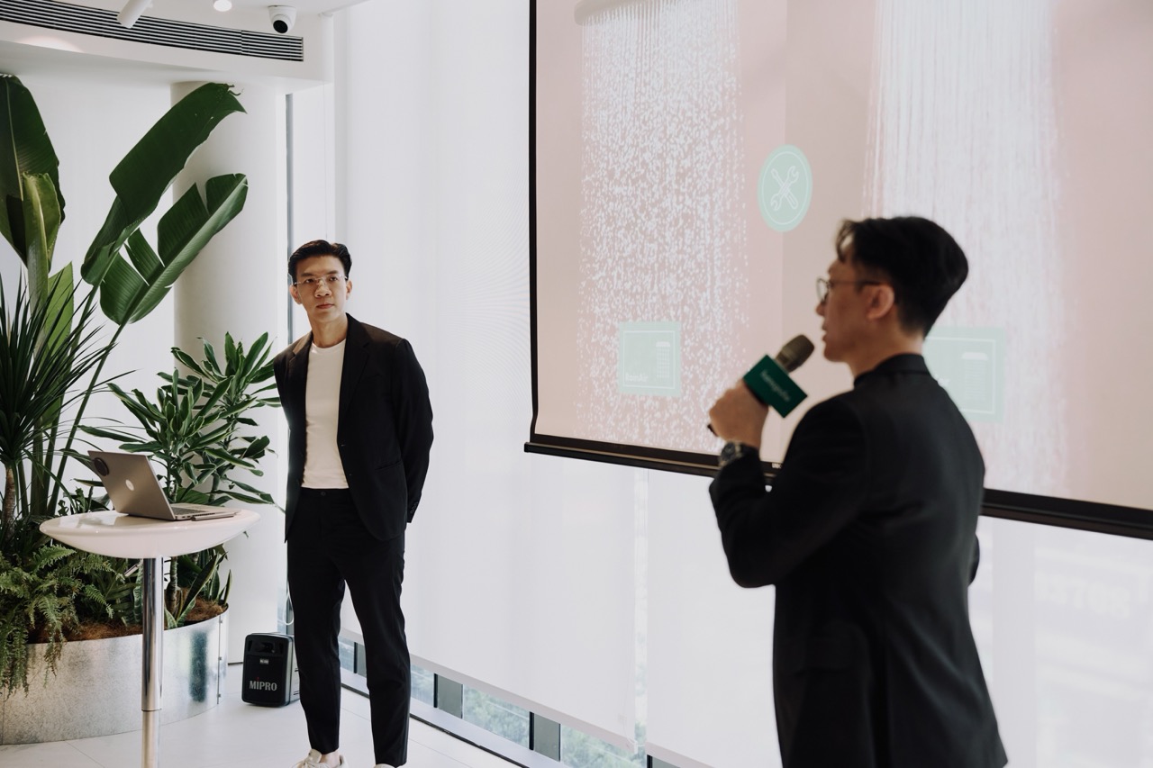 hansgrohe 亞太區域產品經理(左)及台灣區域總監(右)親自介紹iF雙金獎背後的設計理念。 (photo credit:hansgrohe)