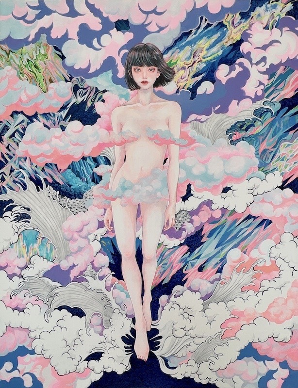 Marina 真吏奈《Heavenly girl Series ALIVE》(2022)。作品以柔和筆觸勾勒夢境般的少女形象,流露細膩情感與靈性光芒,是藝術家「Heavenly girl」系列的代表作之一。(圖片提供:尊彩藝術中心)