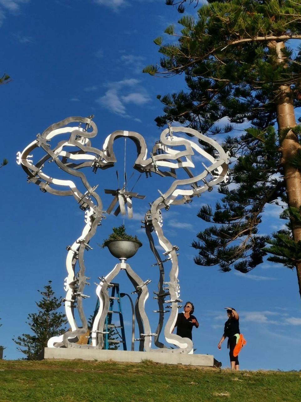 劉柏村《綠金剛 Green Iron Man》(2022)鋁合金、土、植物構築而成的巨型雕塑作品,尺寸達 220x370x450 公分,展現人造與自然交融的張力與詩意。(圖片提供:劉柏村)