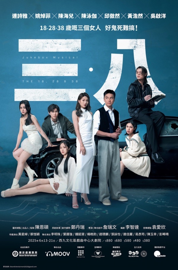 爆炸戲棚娛樂繼《大象的告別式》後,藝術 總監陳恩碩製作全新大型Jukebox Musical 《三•八》!鄭丹瑞原創的荒誕故事、詹瑞文 久別回歸香港執導,由臺北文學獎劇本冠軍李智達執筆、袁愛欣擔任音樂總監,6月13日起於西九文化區戲曲中心大劇院上演。