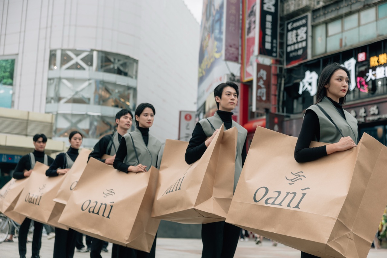 Oani 的首次亮相,並未侷限於室內空間,而是將西門町街頭納入展演的一部分。開幕當日,模特兒與表演者在街區中行走、停頓,透過身體動作與節奏轉換,將城市的喧囂引入室內,再逐步過渡至相對安靜的空間狀態。Oani 將旅宿定位為一種可被行走、停留與感知的空間經驗,使建築與人的使用關係更為緊密。