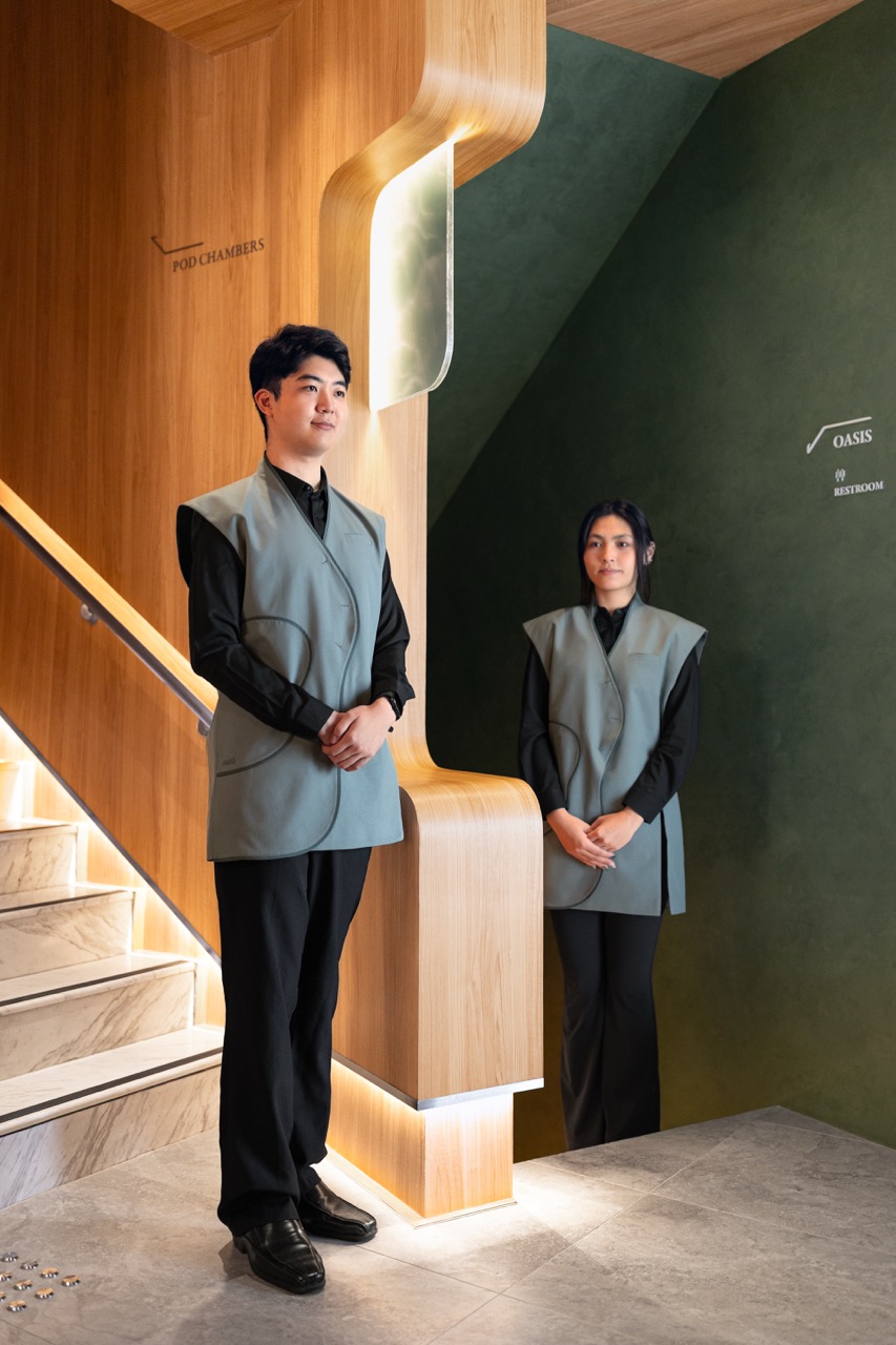 制服設計由台灣品牌 UUIN 操刀,結合機能與輪廓語彙,呈現介於旅宿與城市之間的工作服樣貌。 ( PHOTO CREDIT:MEANDER Group 漫步集團)