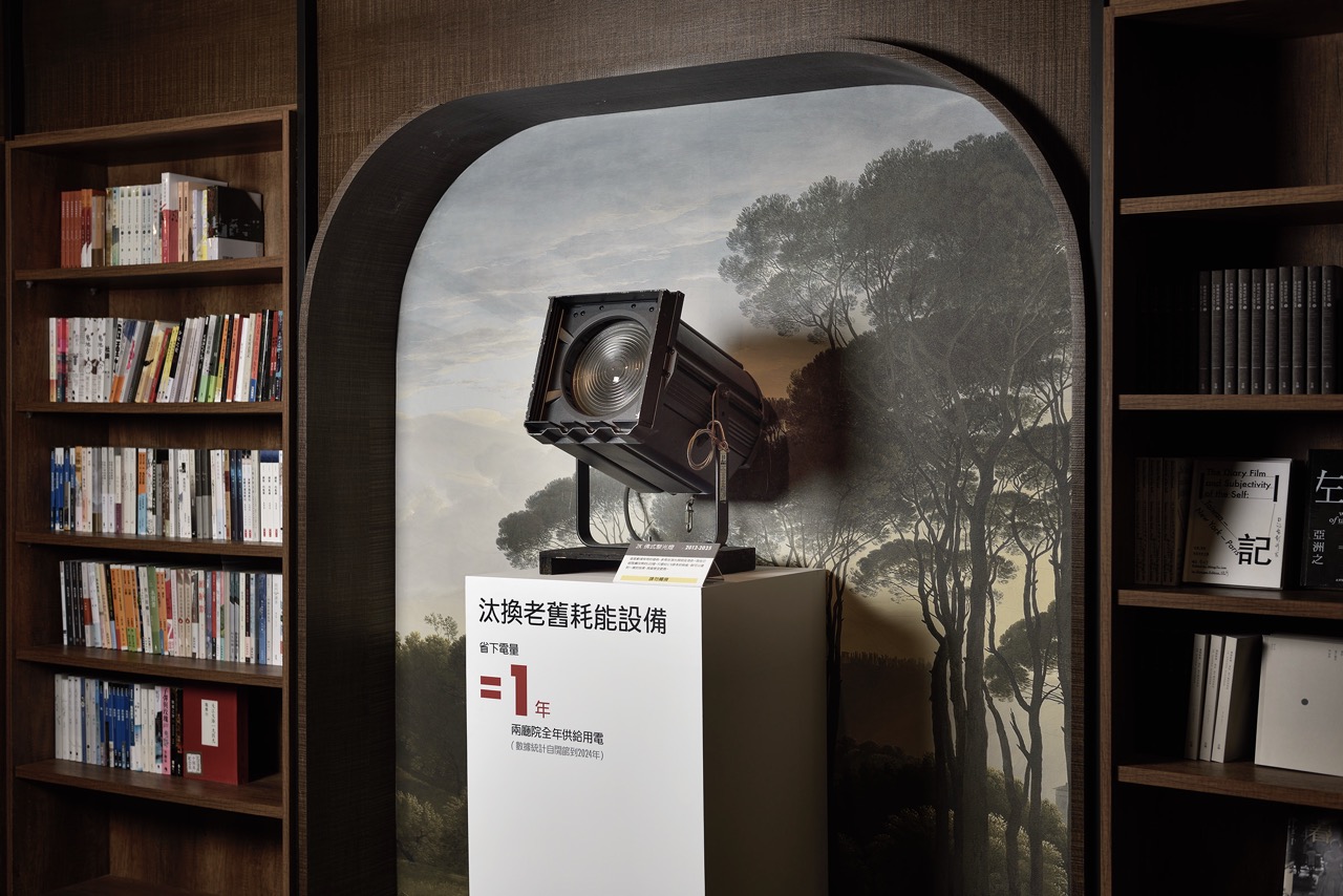舉例來說,截至今年11月,兩廳院主辦演出中仍有約 57% 的觀眾選擇使用紙本票。展覽現場同時呈現開館至今三個不同年代的紙本票券,並透過數據化方式,說明 OPENTIX 售票系統自 2021 年啟用票券電子化以來,累計售出的電子票所節省的用紙量,已相當於可鋪滿 25 座藝文廣場。此次特別展出的「佛式聚光燈」,則象徵兩廳院多年來持續汰換老舊高耗能系統的過程,這座曾在劇場中扮演關鍵角色的燈光設備,如今已全面改為 LED;近年透過設備更新所節省的電費,幾乎可覆蓋兩廳院一整年的營運用電。