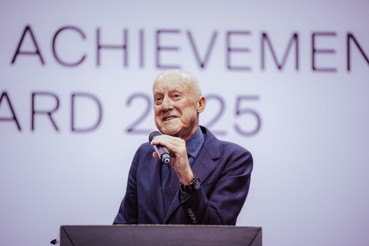今年頒獎典禮最動人的時刻,DFUN 獨家直擊盛況——來自享譽國際的建築大師 Norman Foster。獲頒「終身成就獎」時, he回顧了自己自 1962 年以來 63 年的建築生涯,強調設計是一項集體協作的過程,「建築太重要,不能只交給建築師一人。」他致謝所有曾並肩作戰的團隊成員、業主與城市決策者,並以自身參與的德國國會大廈(Reichstag)改造案為例,談論永續與公民空間的價值。