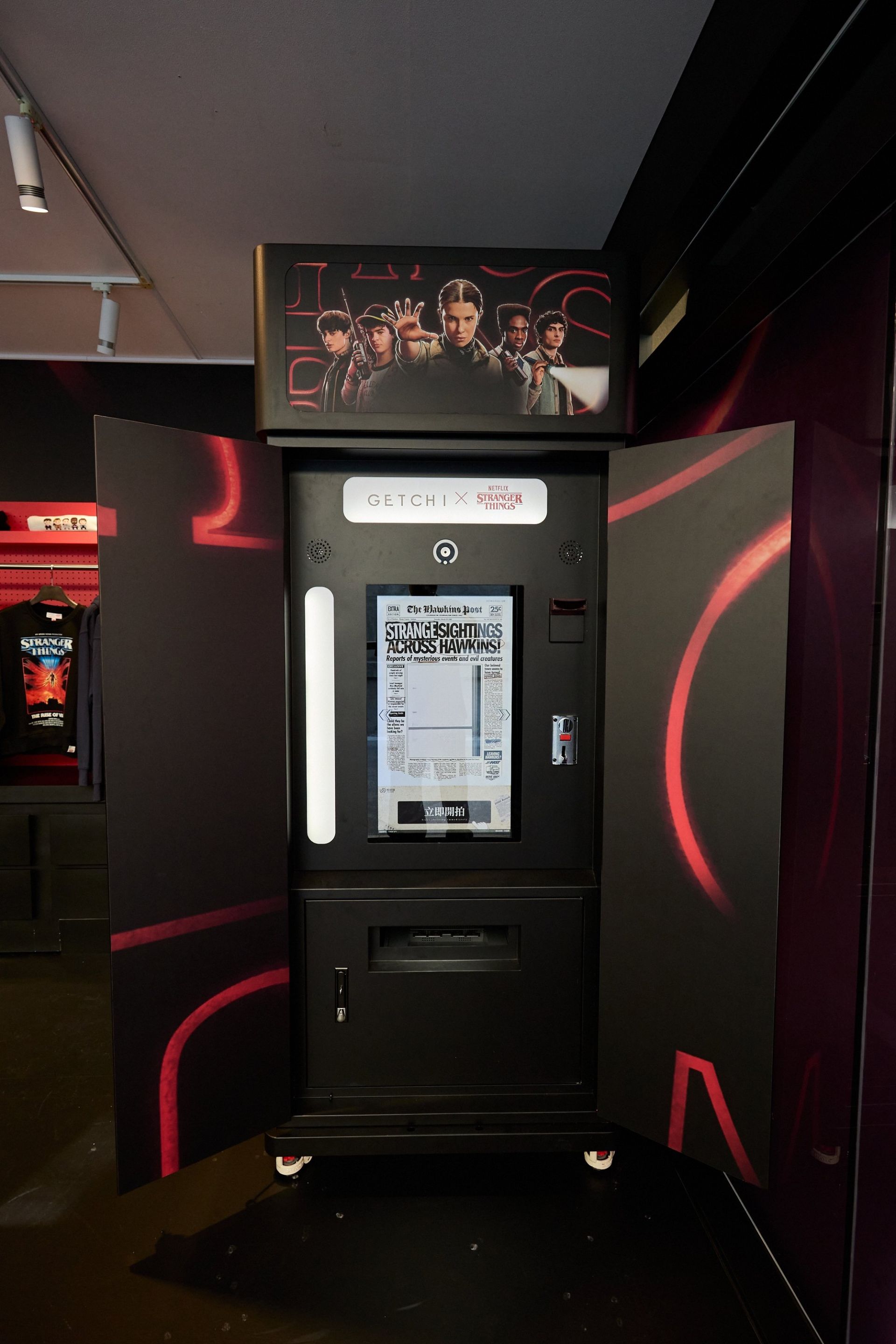 GETCHI x《怪奇物語 Stranger Things》這次合作的快閃活動從 11 月 24 日起於華山園區「藝術西街」正式開放,現場打造出專屬於《怪奇物語》的沉浸場景,包括暗色調陳列、主角群人形立牌,甚至還有全球唯一怪奇物語報紙機,粉絲踏入空間就如同被拉入顛倒世界的入口。而最具話題性的莫過於全場唯一的 Netflix《怪奇物語》專屬報紙機,觀眾可以立即列印屬於自己的「霍金斯郵報」頭條報紙,彷彿親自成為故事的一部分,這項設置也被視為本次快閃中最值得收藏的限定體驗。