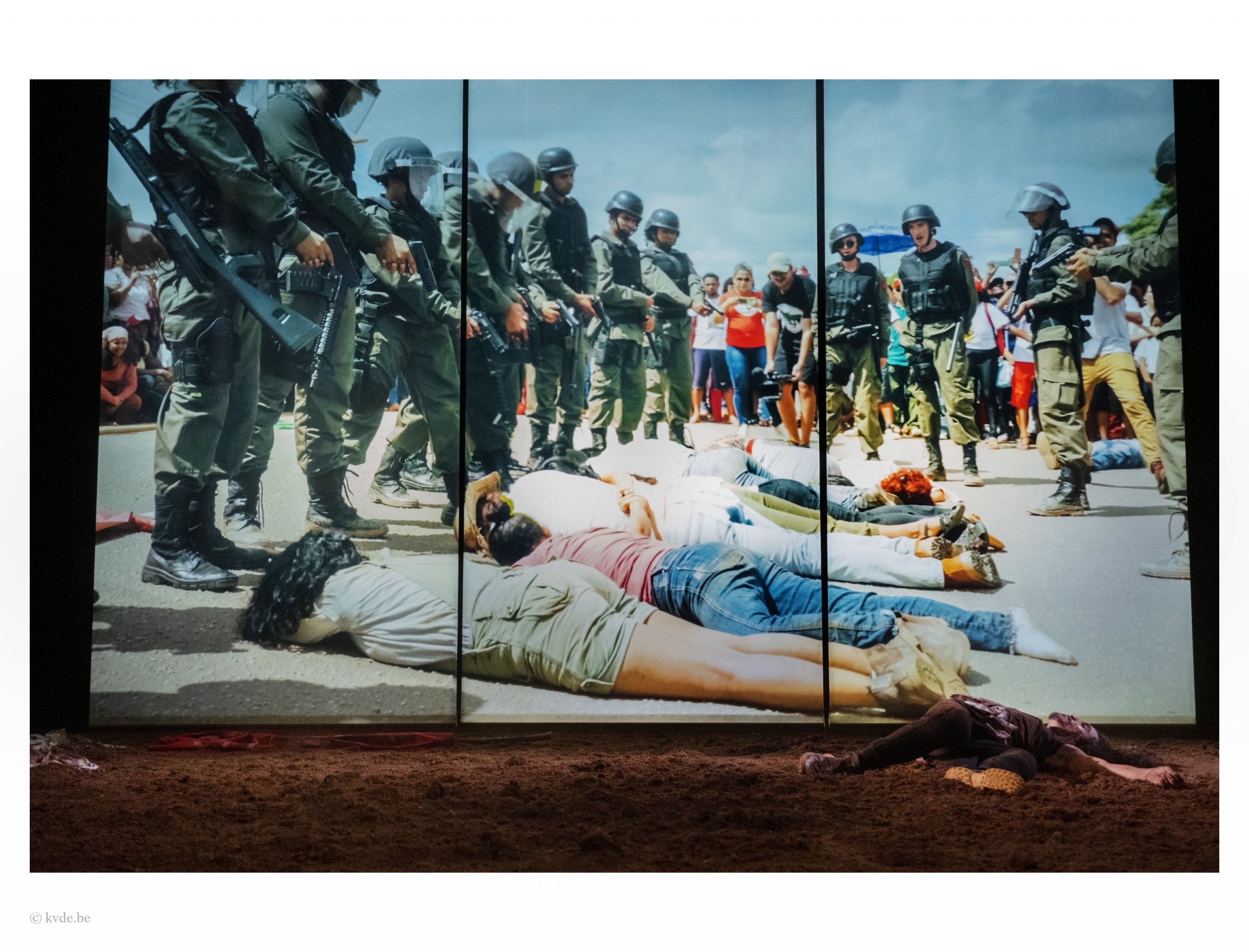 跨越現實與劇場,以獨特美學挑動社會敏感神經的米洛・勞與巴西無地農民運動組織聯手,以錄像結合現場演出,將真實事件揉合希臘悲劇《安蒂岡妮》,控訴人類貪圖利潤、盲目、自負,最終釀成困境後與之對抗的過程。(photo credit:國家兩廳院)