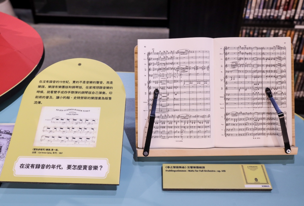 國家兩廳院表演藝術圖書館策畫「小約翰‧史特勞斯誕辰200週年特展」,透過小遊戲進入「圓舞曲之王」小約翰‧史特勞斯的音樂世界。(林韶安攝影)
