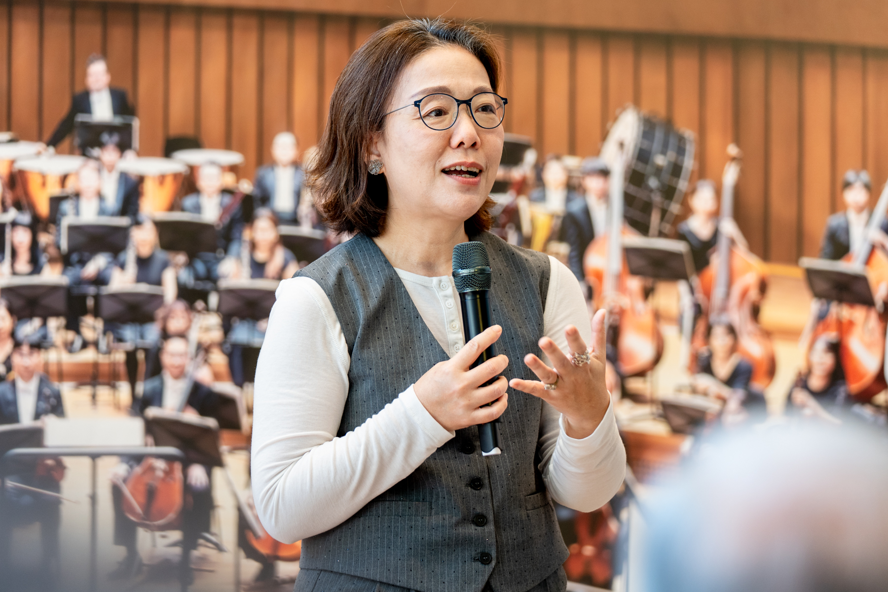 國臺交團長歐陽慧剛於特展開幕現場致詞,談及樂團八十年以來在臺灣土地上的深度連結,並分享國臺交以音樂陪伴不同世代的使命與願景。