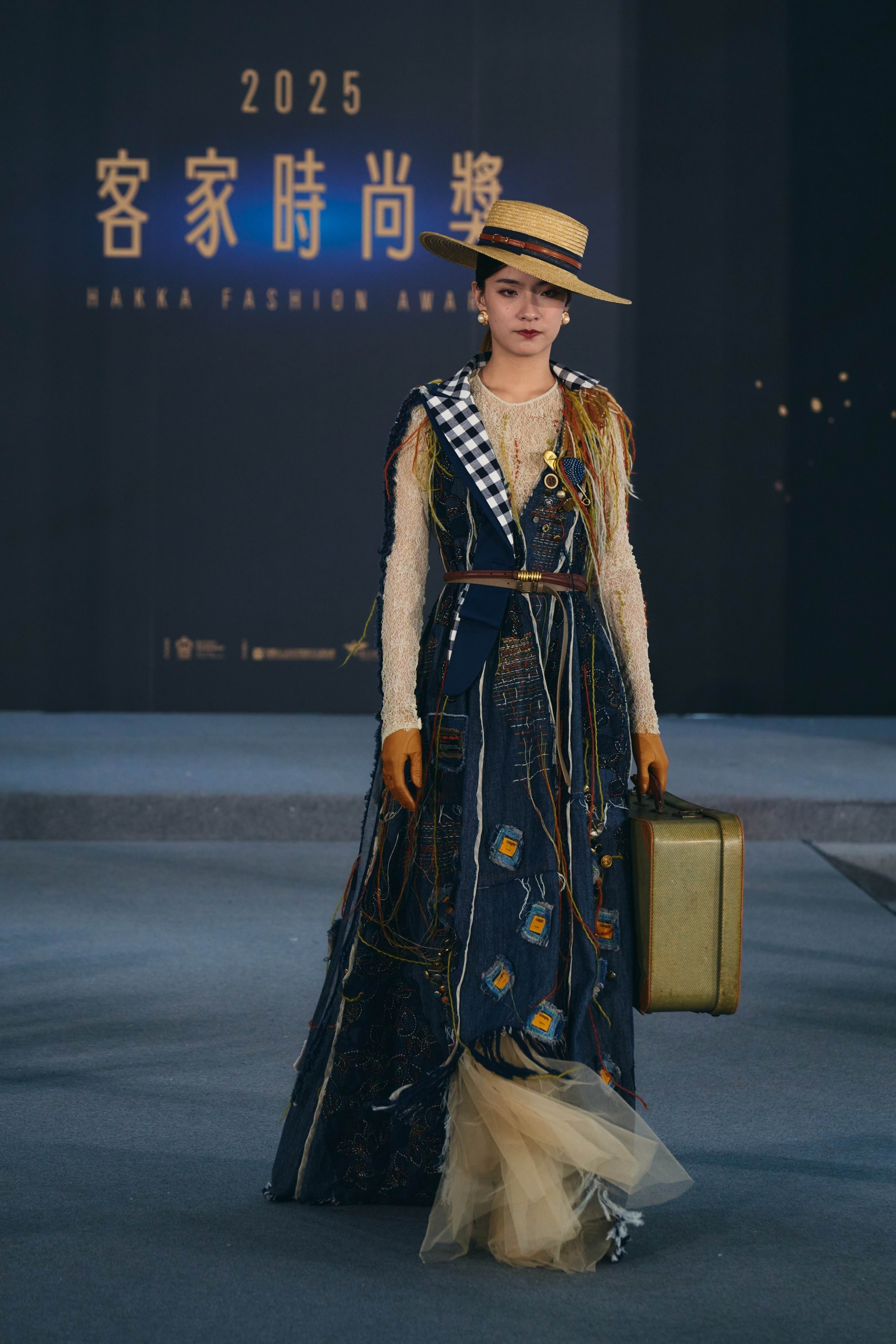 在首屆 2025 客家時尚獎中,社會組冠軍由夏筱琴 Jean Hsia 奪下。她的作品《桐花.縫記 Threads of Memory》以回收丹寧、蕾絲布片、舊鈕扣與再生配件縫製而成,歷經一年多的手工縫補,最終化為一件承載文化與力量的作品。