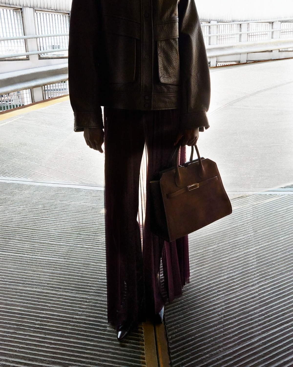 在品牌的語彙裡,「包」從不是單純的配件,而是一種建築式的日常雕塑。設計師將光影、結構與皮革的質地融入每一個比例中,像在手上握著一座縮小的米蘭。這樣的理念延續了 Valextra 的品牌精神——為都會而生,為行動中的優雅而設計。